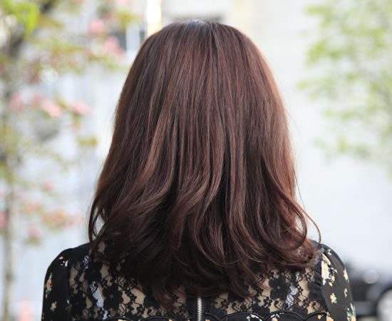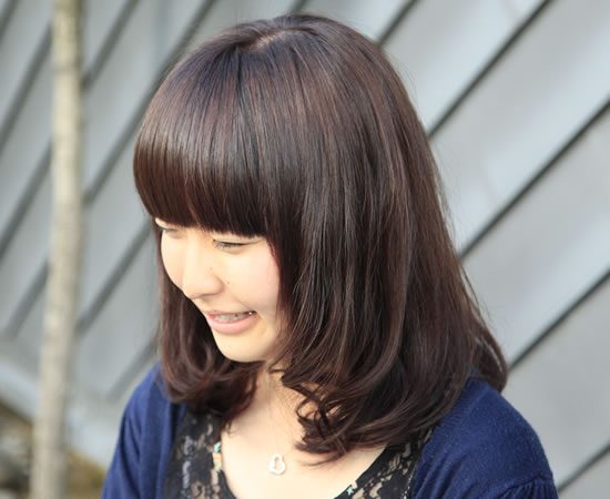 | Aラインのシルエットと重めのバンクでキュートに。カラーはレッドブラウン。 | |||